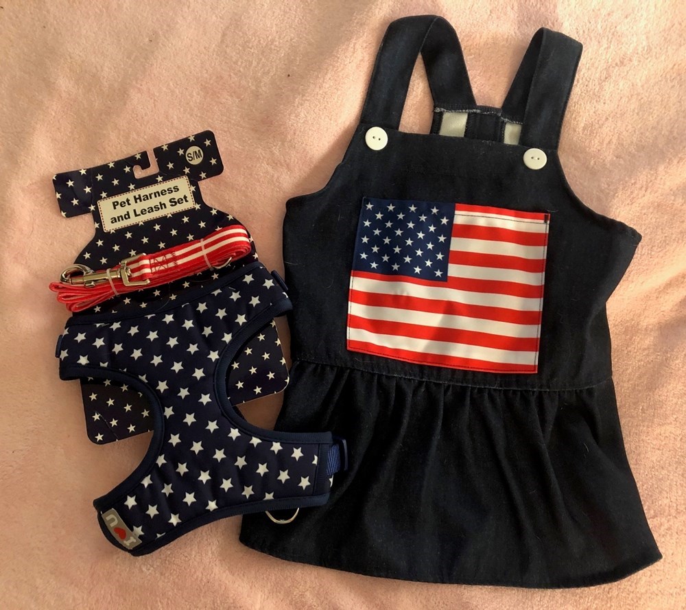 New! Flag Dress/Jumper, Harness & Leash (Medium)