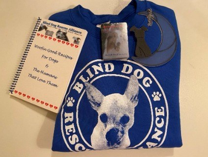 BDRA Claire Sweatshirt. Limited sizes in each color; winning bidder has the choice of blue (shown in picture), maroon, bright pink or matt gray (4x available in this color). Small-4x. BDRA Cookbook, Playing Cards with various dog pictures, CLEAR plexiglass dog on the moon window hanger.